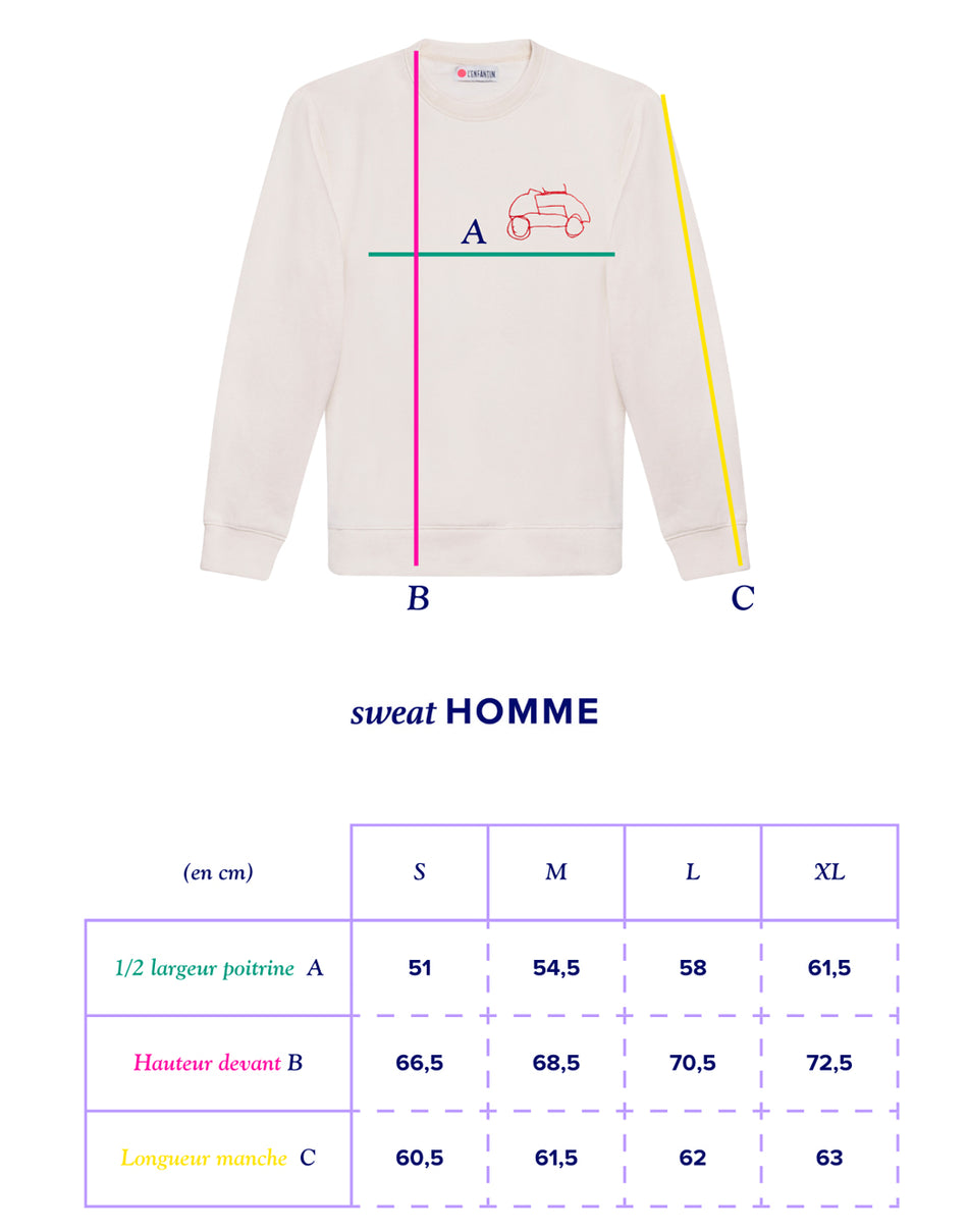 L’intérieur du sweat est « gratté », ce qui signifie qu’il est doux, chaud, confortable. C’est le sweat doudou, tant à l’intérieur qu’à l’extérieur car il est brodé d’un chef d’oeuvre!