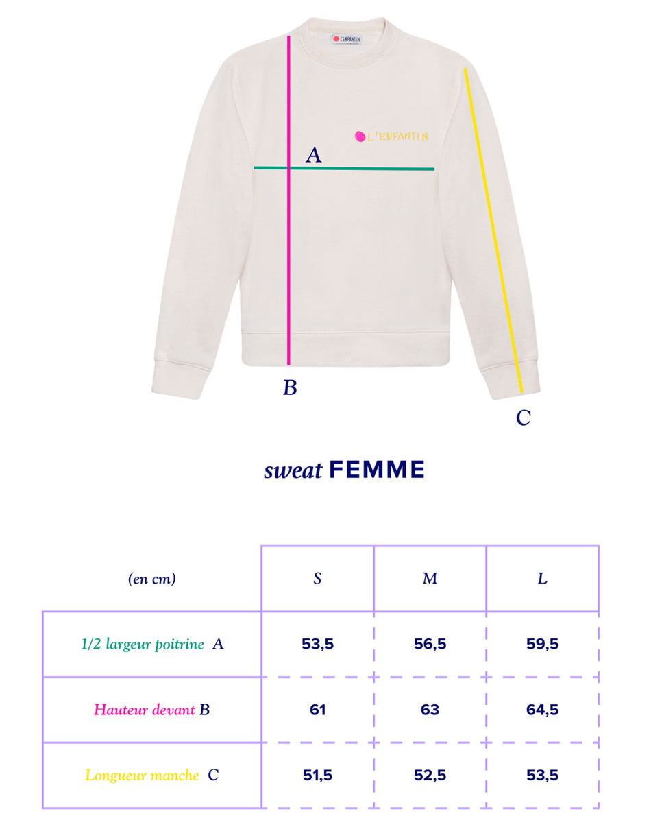 L’intérieur du sweat est « gratté », ce qui signifie qu’il est doux, chaud, confortable. C’est le sweat doudou, tant à l’intérieur qu’à l’extérieur car il est brodé d’un chef d’oeuvre!